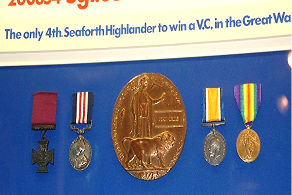 In November 1972, John’s family presented his medals to the 1st/4th Seaforth Highlanders Reunion Club; the club decided to put the medals on public display in the Military Room at Dingwall Museum, Scotland. The artefacts include John’s Victoria Cross and Citation, Military Medal, British War Medal 1914-1918, and his Victory Medal 1914-1919. A bronze memorial erected to John in Nitshill public hall and subsequently moved to Levern Primary School, is also now in Dingwall Museum.